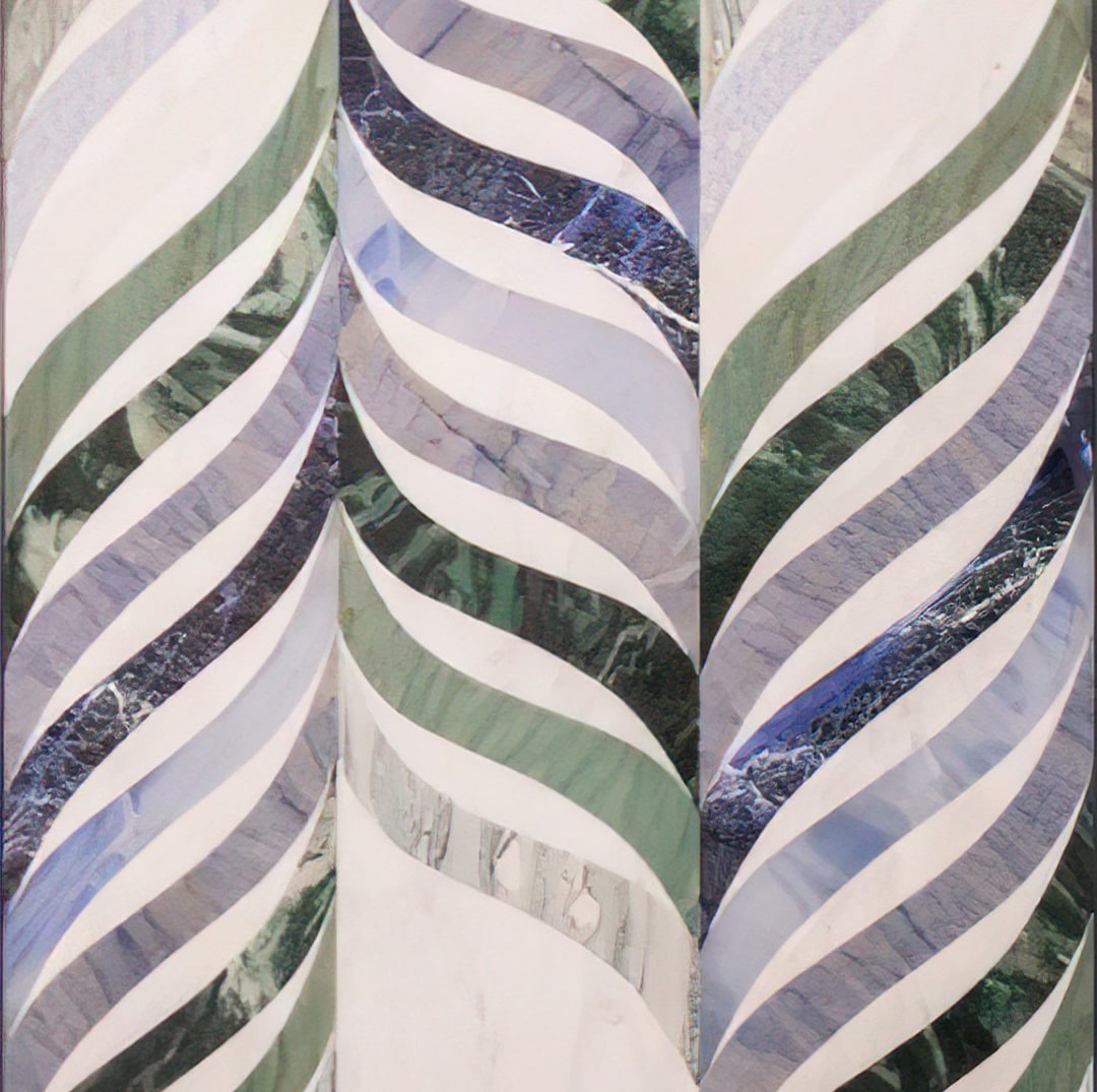 Patricia UrquiolaAlgas, modular, artistic inlaid wall cladding that matches the seaweeds of Algas Vase, but in larger scale. The sinuous and fluctuating inlays in Verde Cipollino, Lapis Lazuli, Verde Lapponia, Verde Acquamarina, Azul Macauba and White Onyx create with the pure white Calacatta marble background a pictorial ‘wallpainting’.