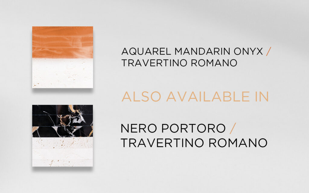 C) Aquarel Mandarin Onyx and Travertino Classico Romano with open pore.