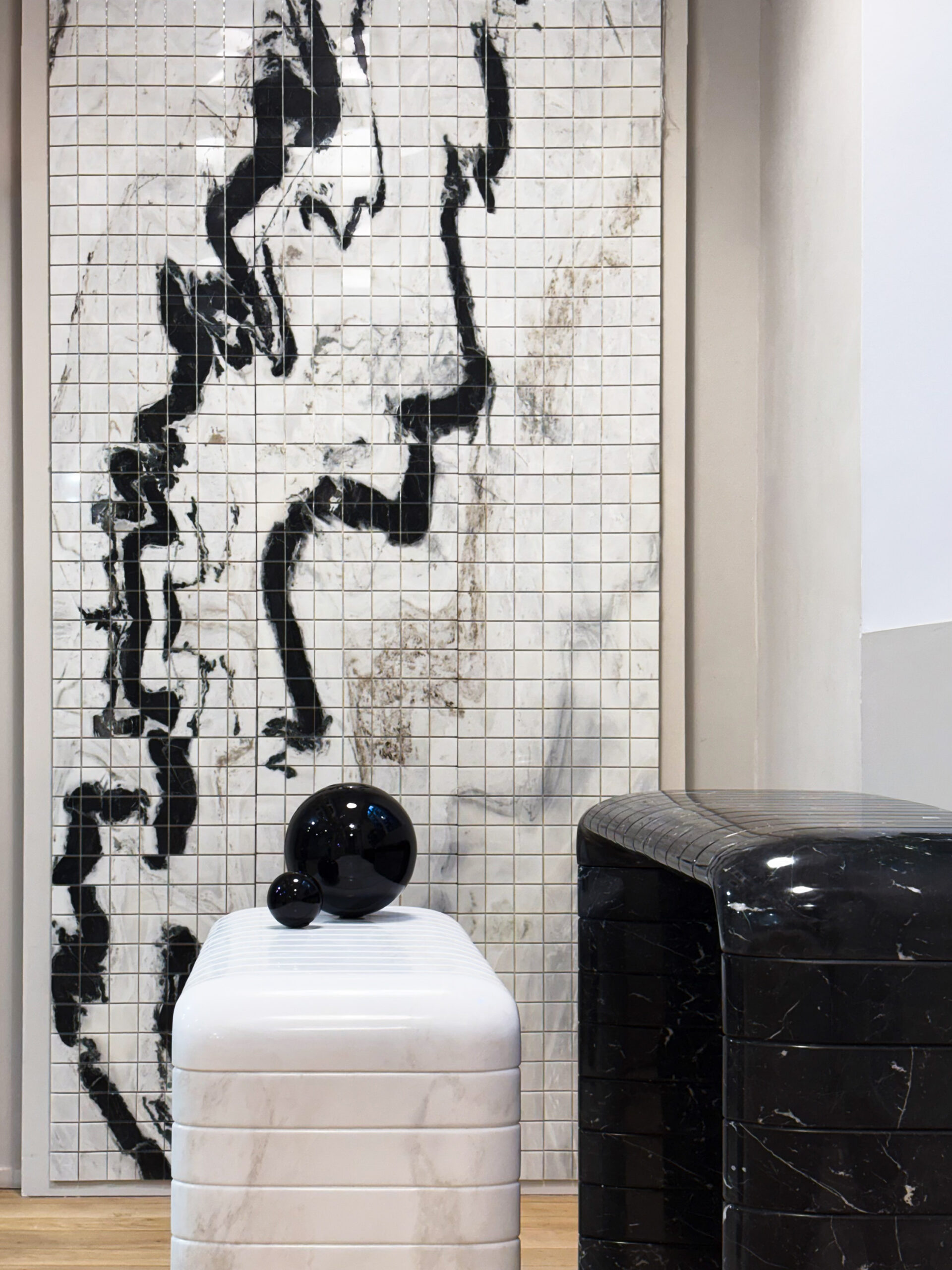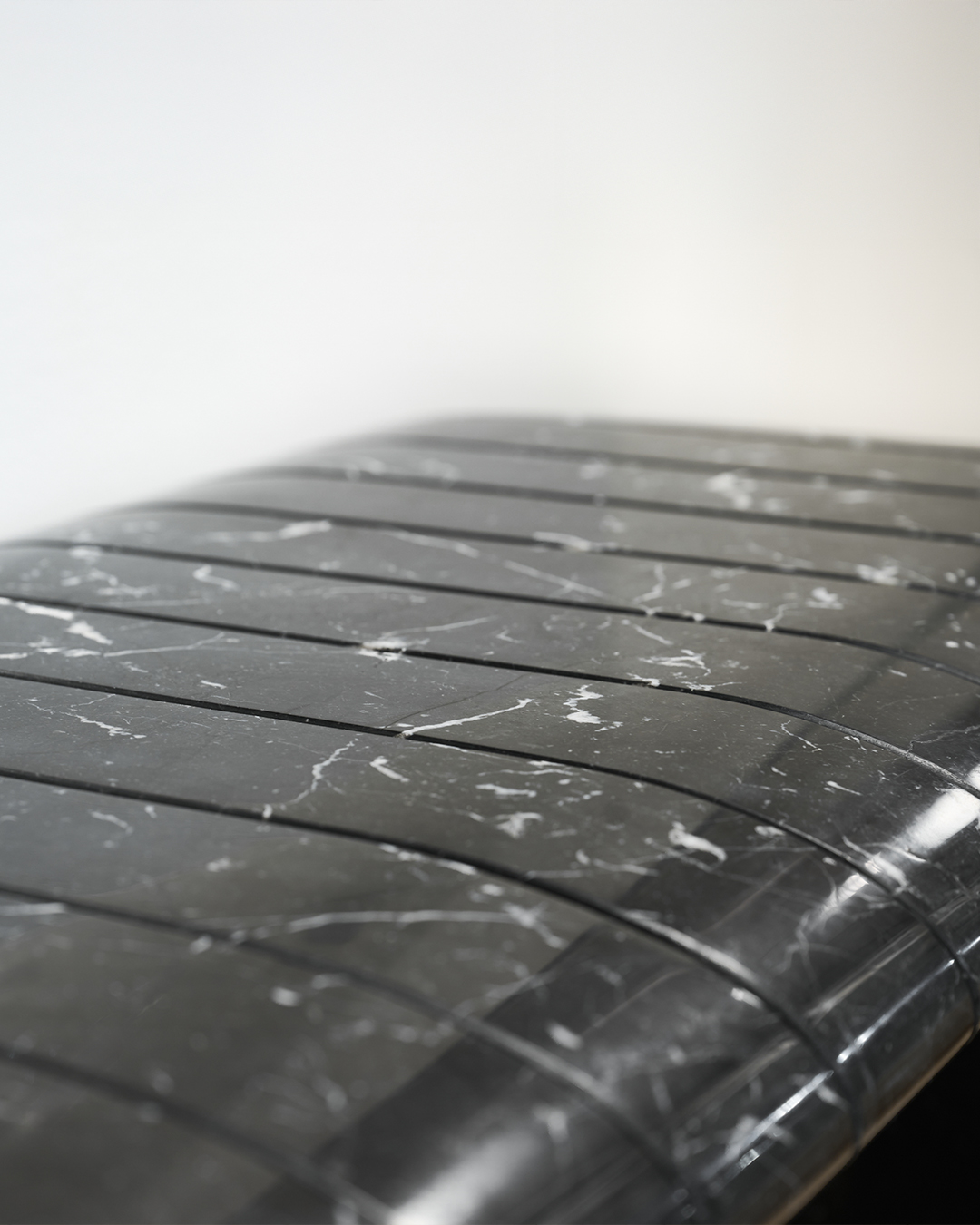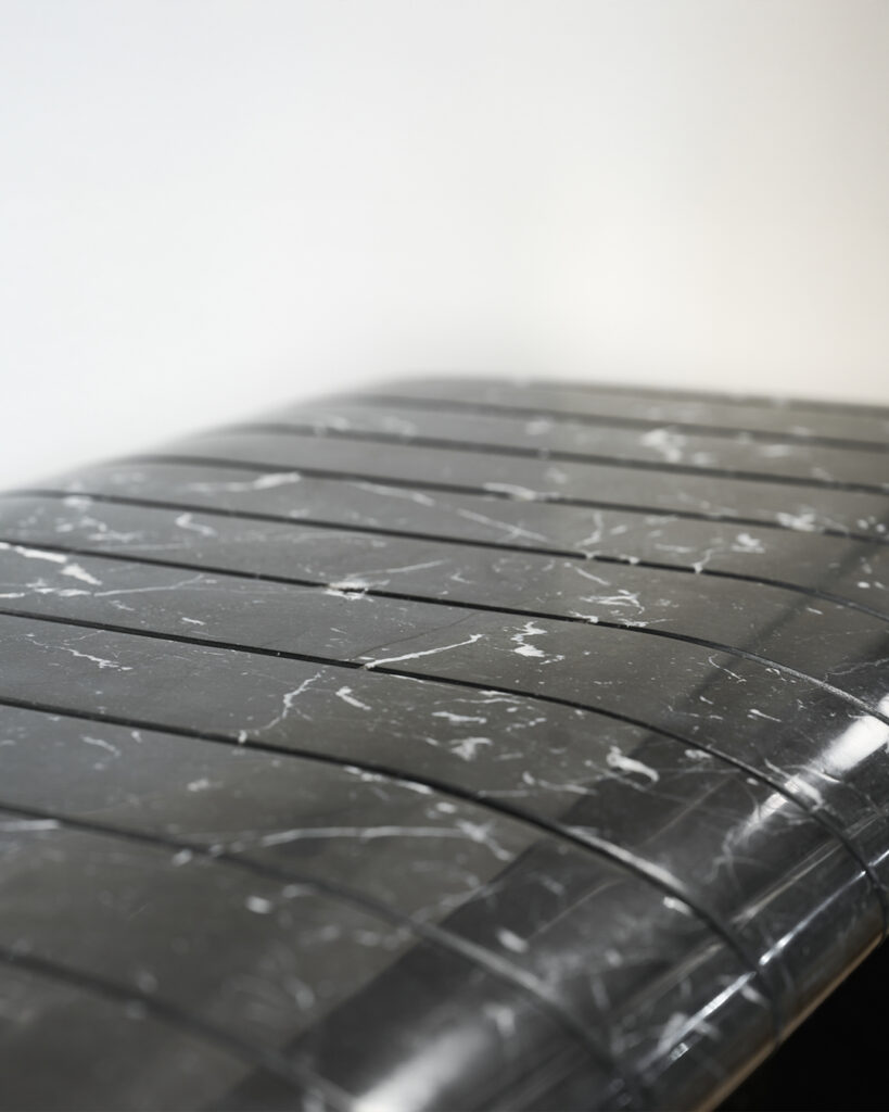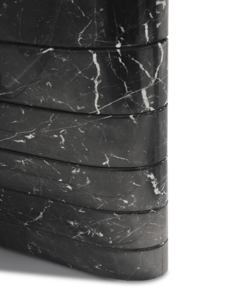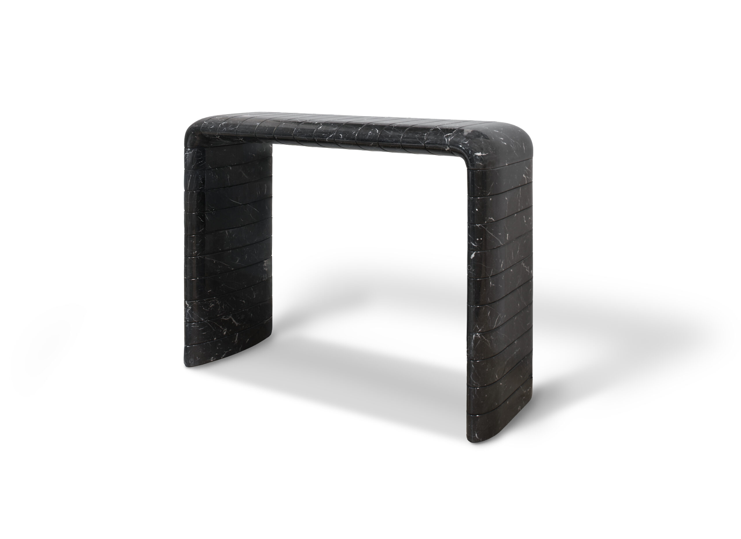 Eric Carlson – CarbondaleThe Bracelet consolle crafted in Nero Marquina marble draws inspiration in both shape and design from an iconic gold bracelet of high-end Italian jewelry from the 1970s—once a favorite of actress Liz Taylor. Like a band with rounded edges, the delicate and distinctive engravings form a signature pattern that flows seamlessly across the top and legs of the consolle, creating a cohesive and sculptural whole.