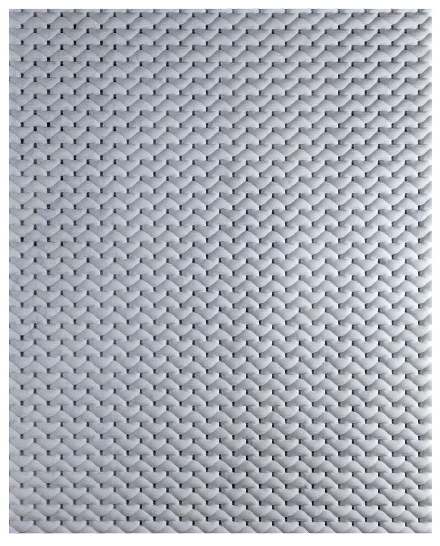 Tricot "Purl" is a modular bas-relief boiserie of Bianco Carrara marble (Bianco Lasa, Striato Olimpico). Colours are delicate and the weave resembles knitted wool: a mutant spirit that turns the stones’ hardness into an idea of softness and warmth.