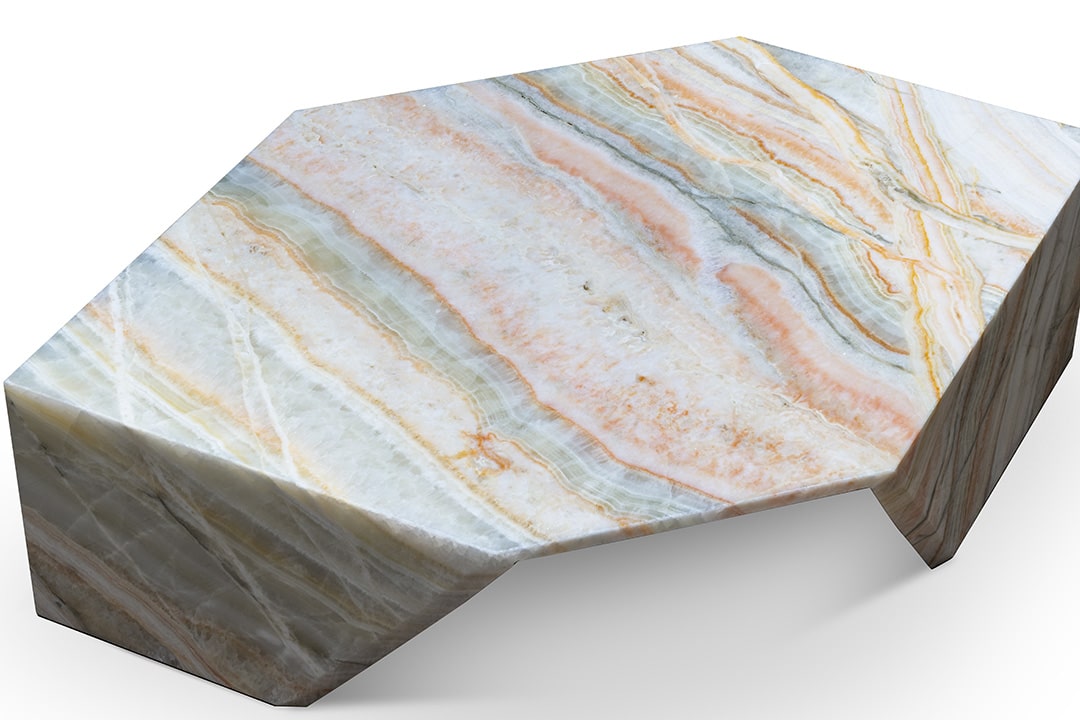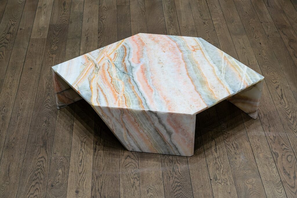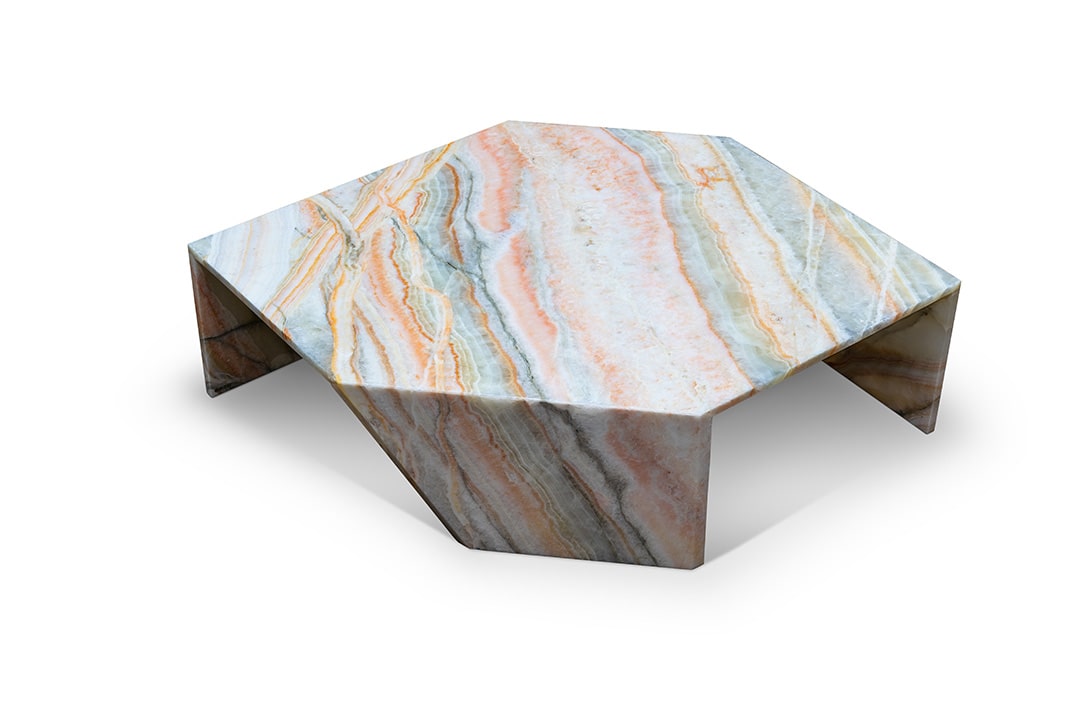 Origami coffee tables, from the Earthquake 5.9 - Rainbow Onyx Special Edition collection. Entirely made of a single slab of Rainbow Onyx. Size S.
