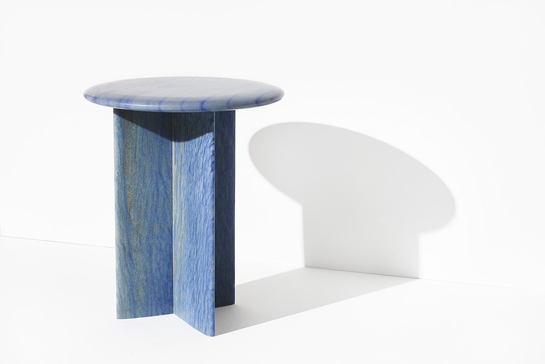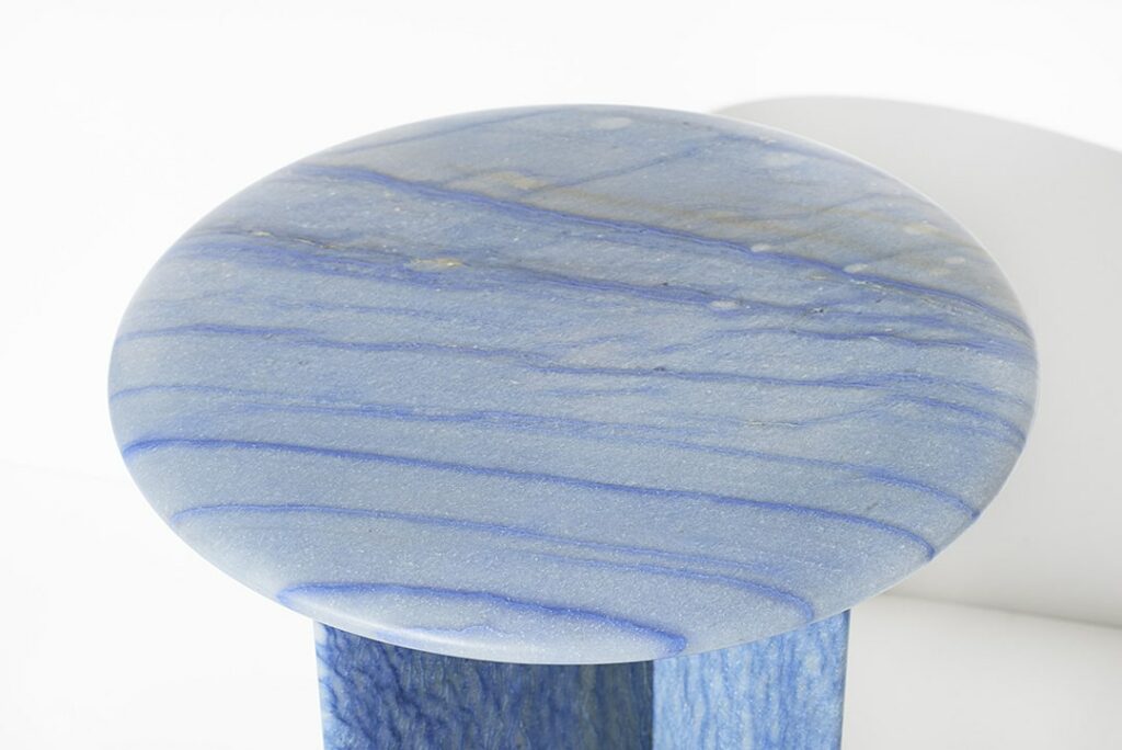 Patricia UrquiolaThe Papiro Coffee Table is available in two different materials: Azul Macauba, an exquisite quartzite from the Macaùba quarry in Brazil, or in Palissandro Bluette. The slender disc, with a semi-gloss finish, stands on a T-shaped base with its longitudinal vein patterns highlighted.