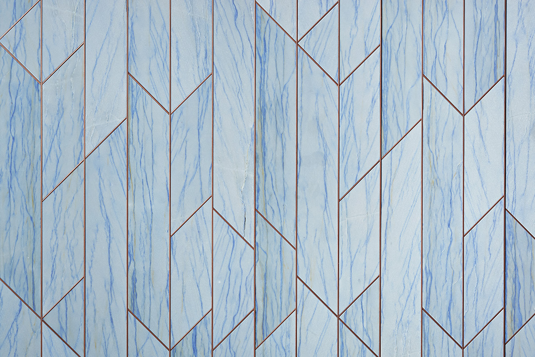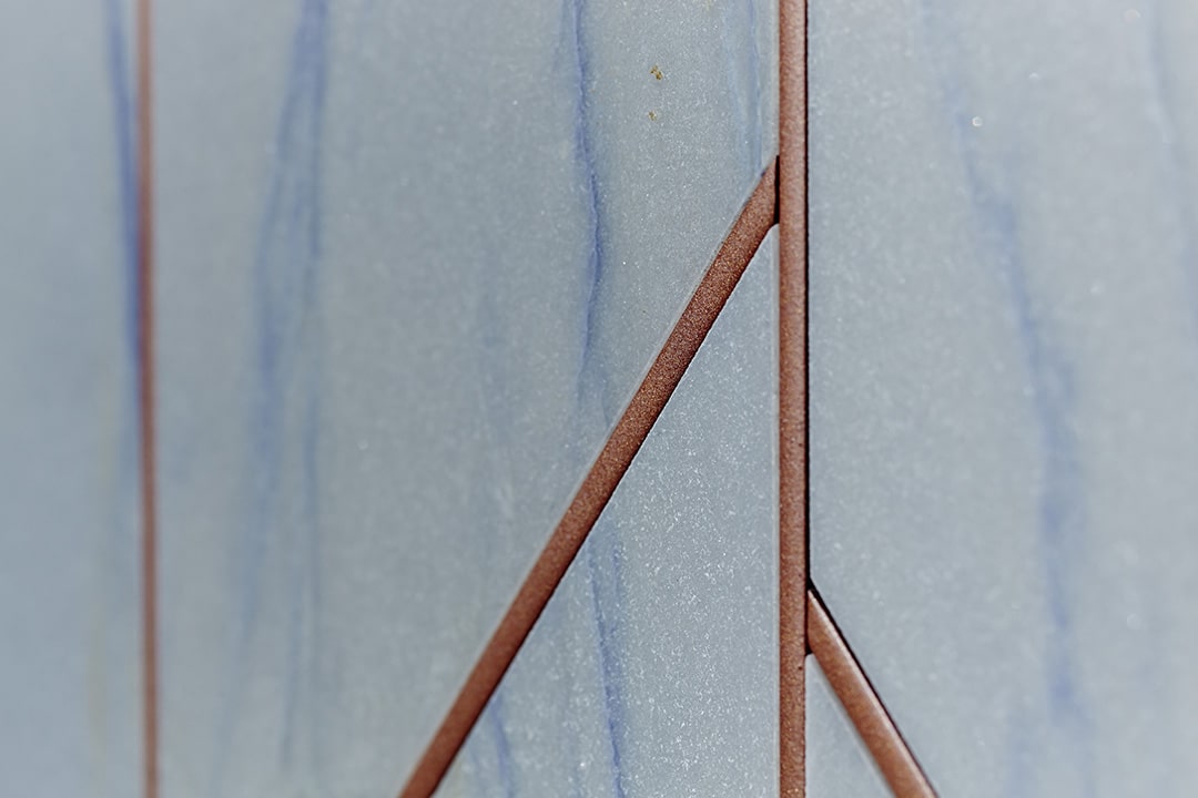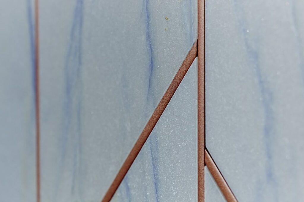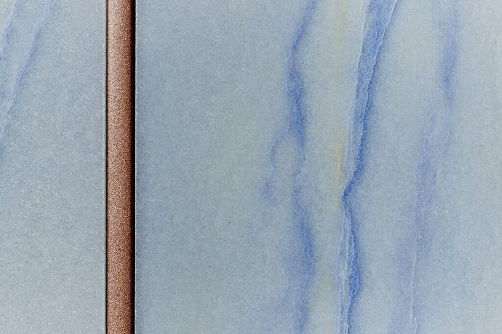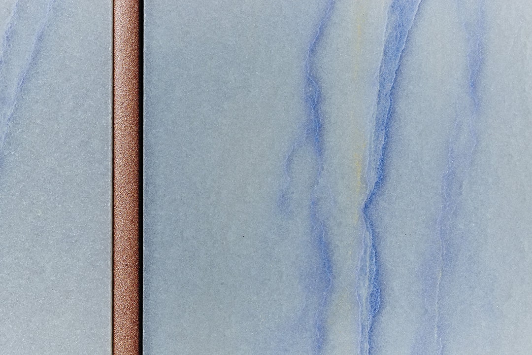 Patricia UrquiolaModular marble inlay in Brazilian Azul Macauba stone and strips of copper-coloured metal that underline its midnight blue vein patterns.