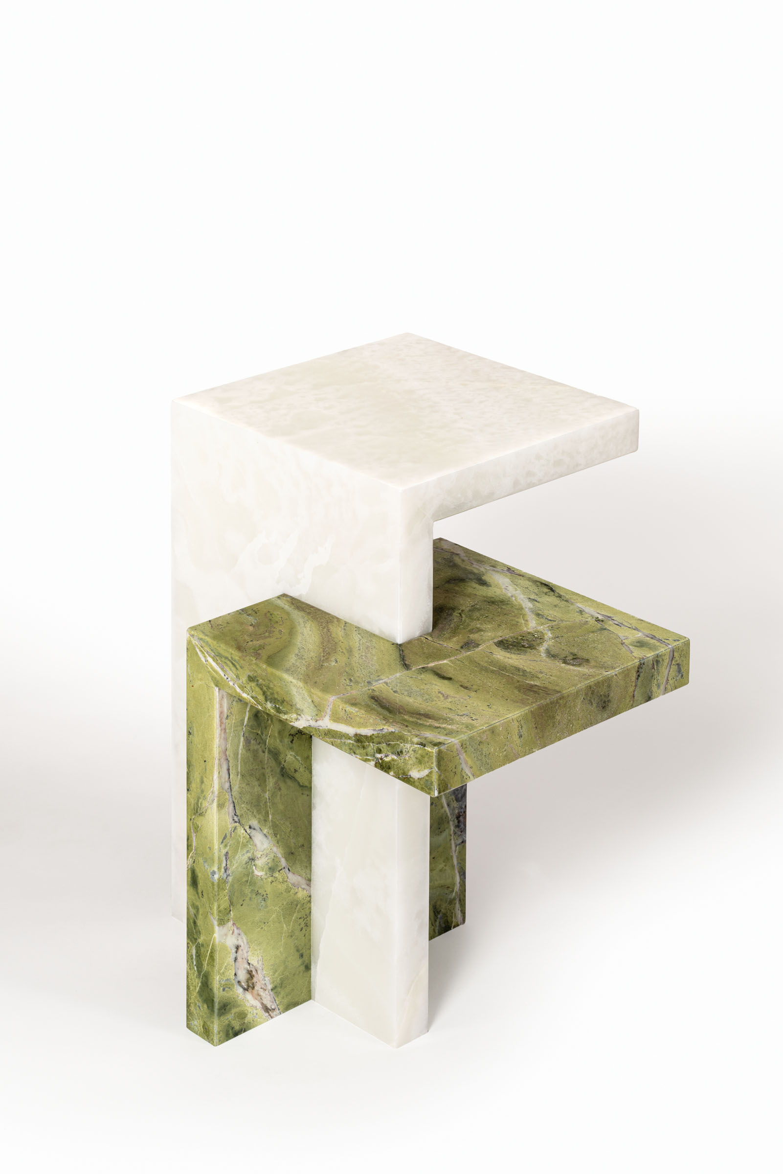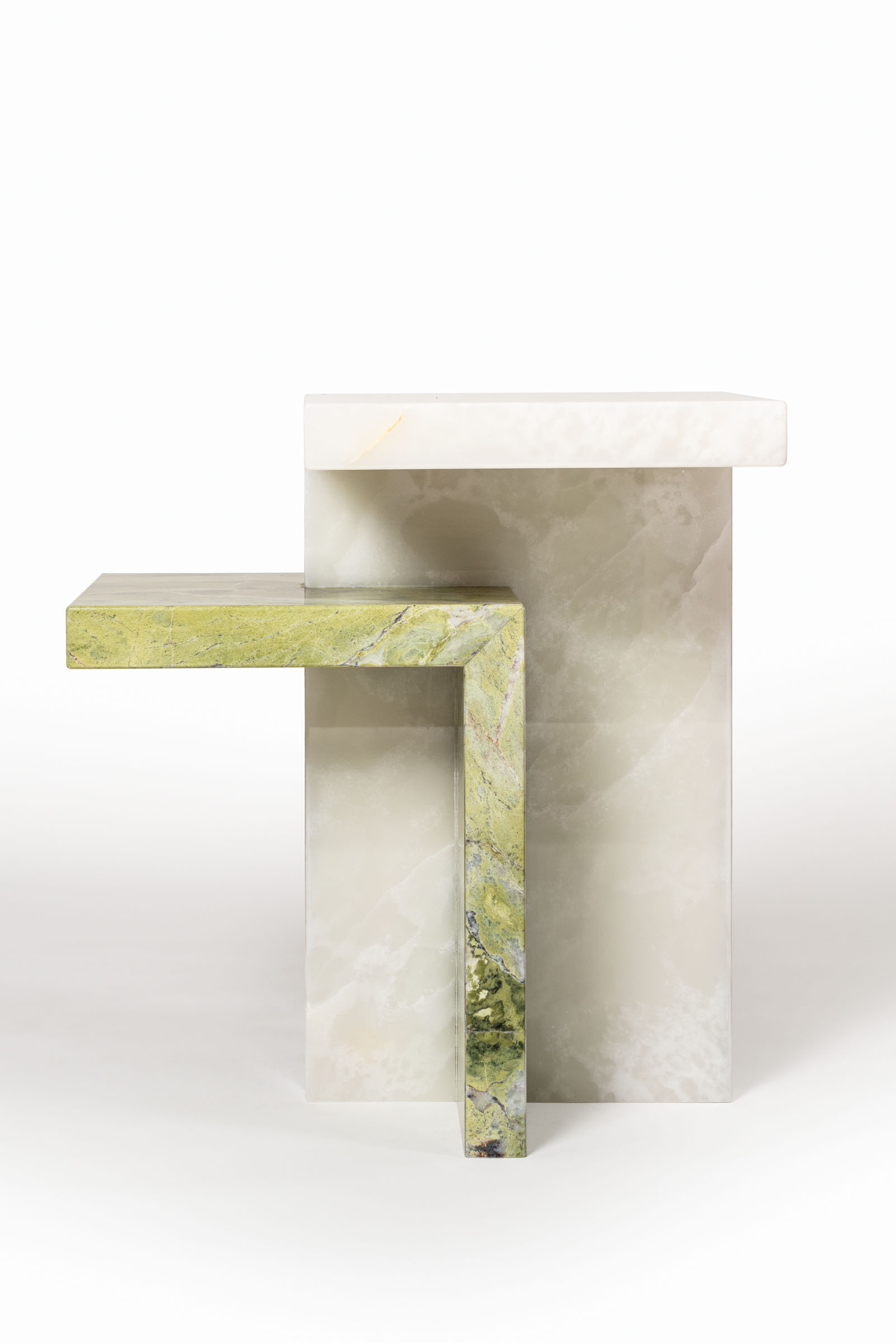 CharmeLa famiglia di Side Tables SIMPLICITÈ comprende 4 Side Tables. Ispirati alla semplicità, l’innesto dalla forma a "T”, metta in primo piano la bellezza naturale del materiale; le superfici di marmi pittorici e dai toni brillanti abbinate all’Onice Bianco, neutro ed equilibrato risaltano nell’interior. Quattro sono le varianti di SIMPLICITÈ Side Tables: Onice Bianco e Irish Green, Onice Bianco e Cappuccino, Onice Rosa e Nero Marquina, Onice Bianco e Onice Vulcano.