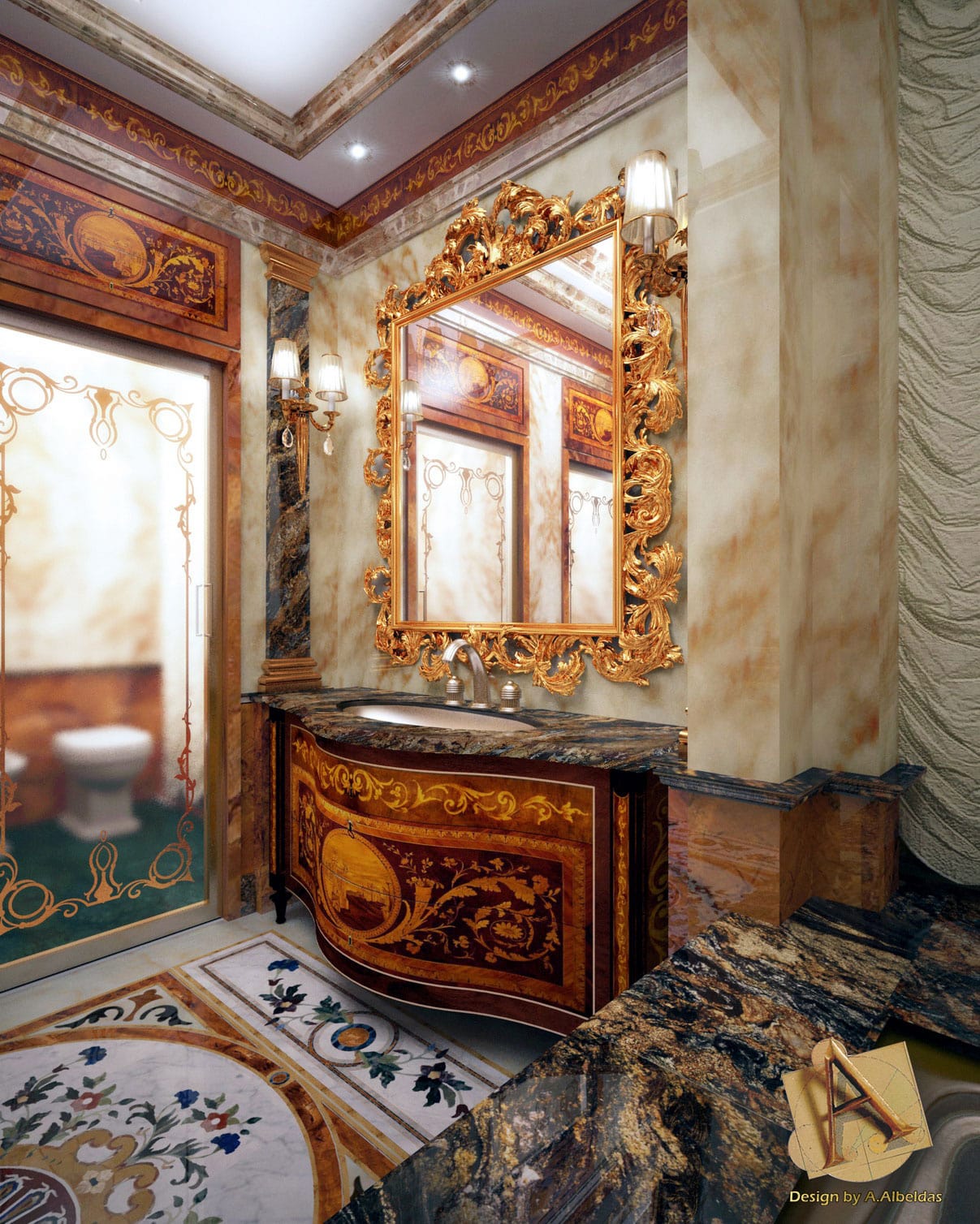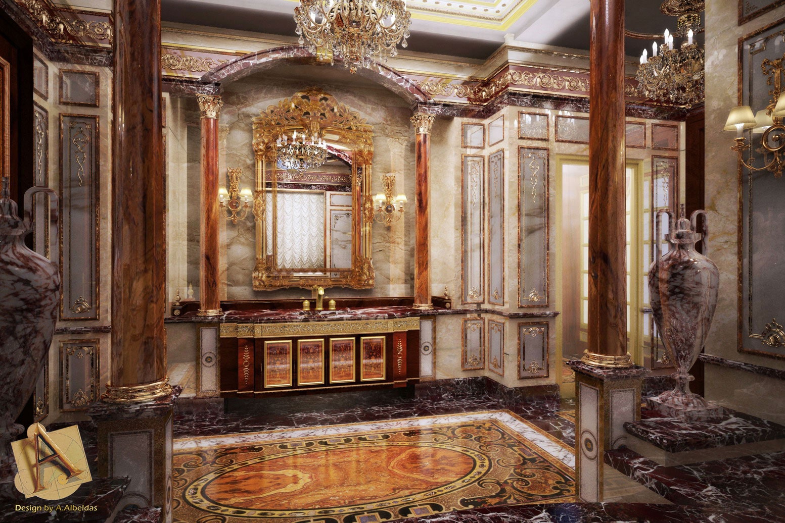 Budri was entrusted with the entire contract for the elements in marble, onyx and