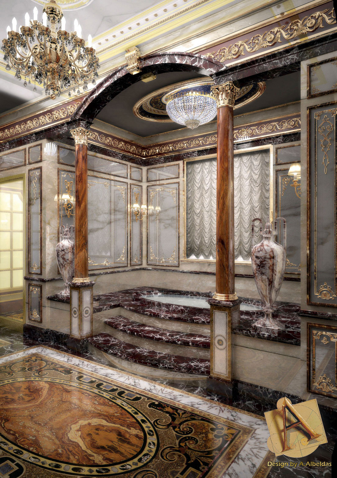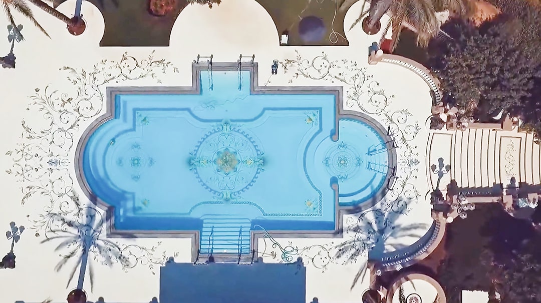 semi-precious stone, inside and outside, including the mosaic pools, the steam room,