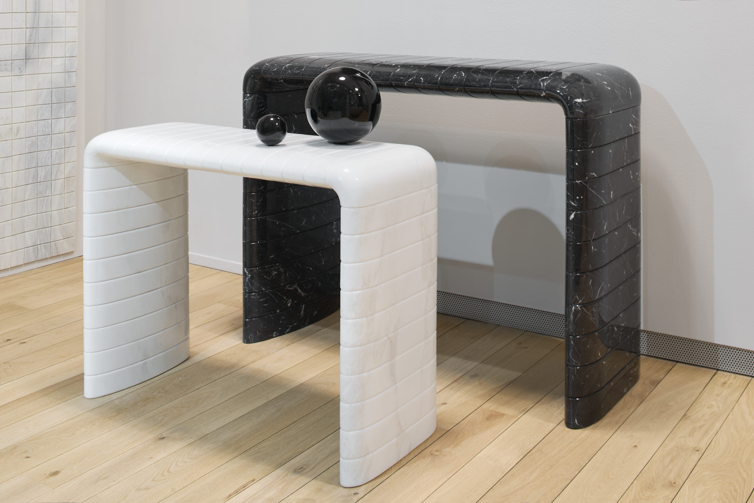 Eric Carlson – CarbondaleLa consolle Bracelet realizzata in marmo Bianco Namibia si ispira per forma e disegno ad un iconico bracciale in oro di alta gioielleria italiana degli anni ’70, a suo tempo il preferito dall’attrice Liz Taylor. Come una fascia dai contorni arrotondati adornata da sottili e caratteristiche incisioni, queste ultime diventano il caratteristico pattern che ripercorre in piano e le gambe della consolle, creando un tutt'uno.