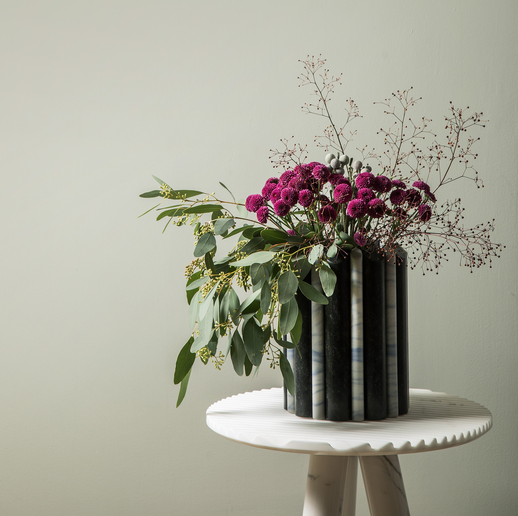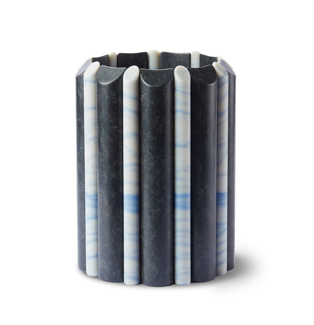 Cristina CelestinoVaso cilindrico, composto da “cannucce” in Azul Macauba e Nero Assoluto che appoggiano su un fondo di Azul Macauba.