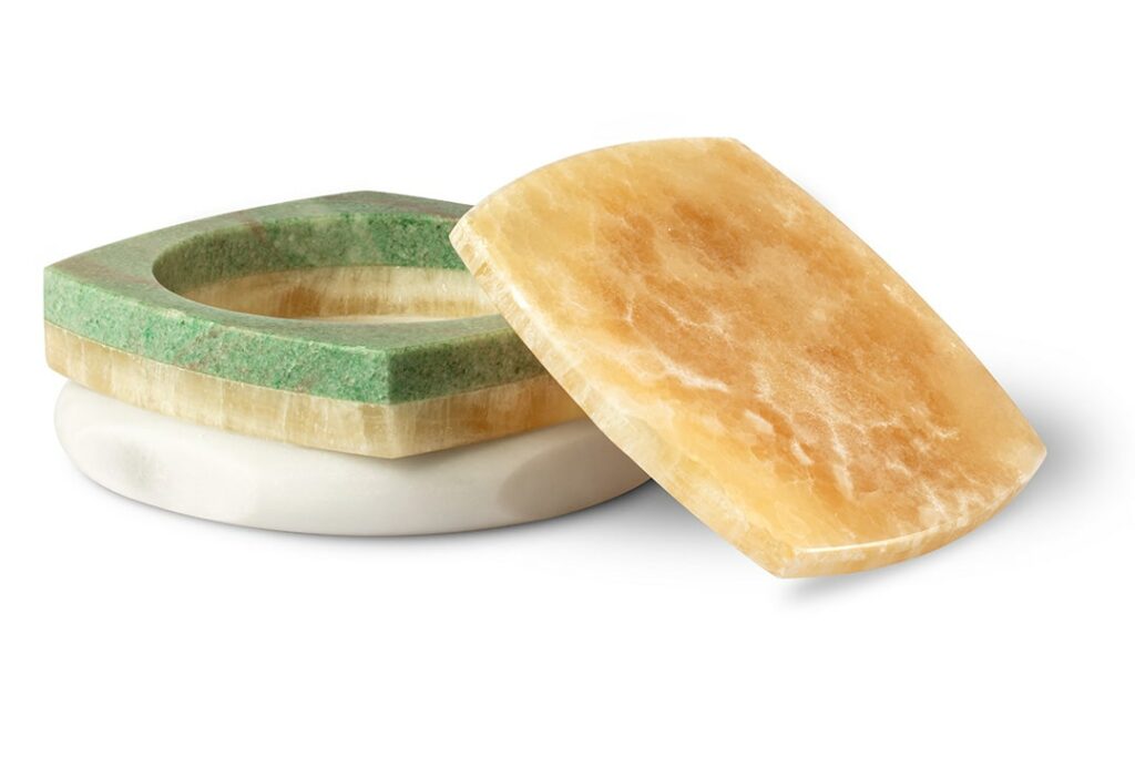 Cristina CelestinoPrezioso scrigno in Emerald Green, Onice Miele e Bianco Statuario. Coperchio in Onice Miele.