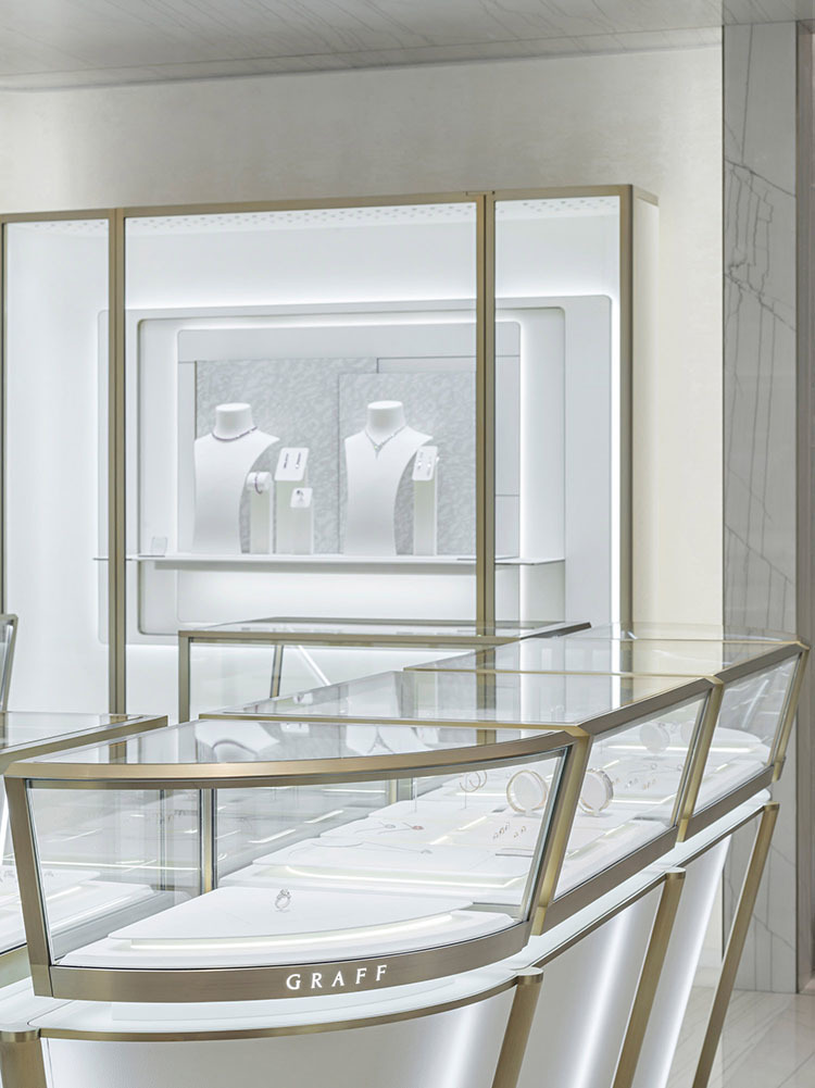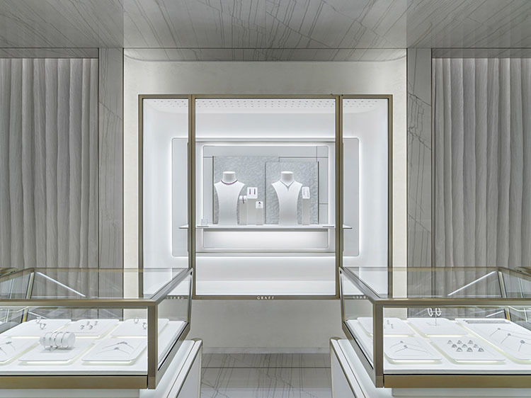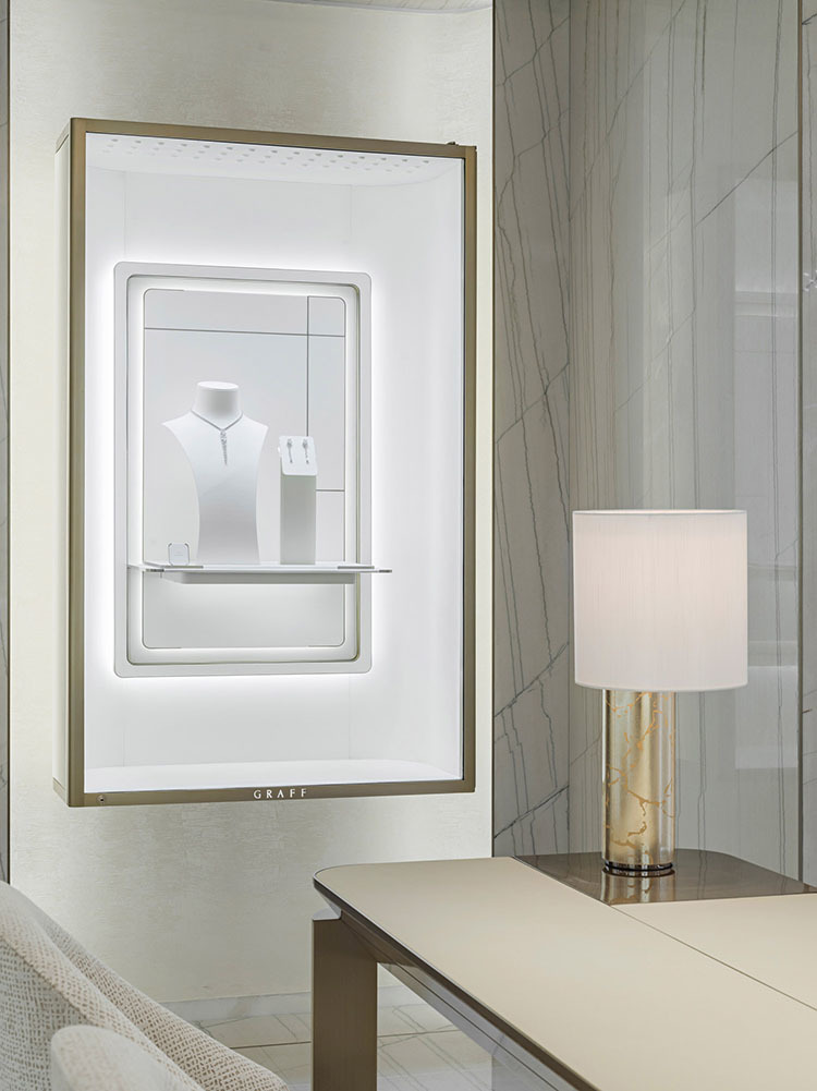 Progetto su misura per il quale Budri ha realizzato pavimenti, rivestimenti e complementi in marmo bianco con venatura gessata, materiale sofisticato ed elegante dalla delicata trama a ragnatela.